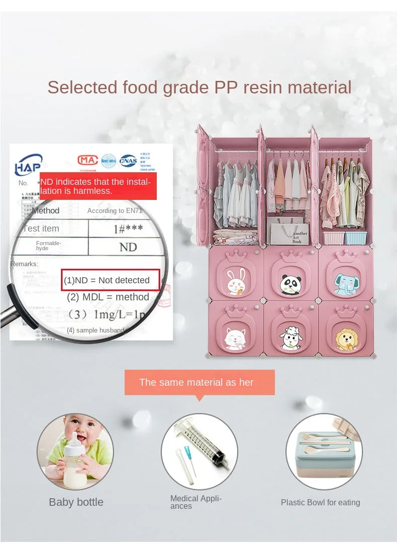 Modern Simplicity Children Bedroom Furniture Folding Wardrobe Cabinets Storage Locker Plastic Collapsible Box Clothes Closet