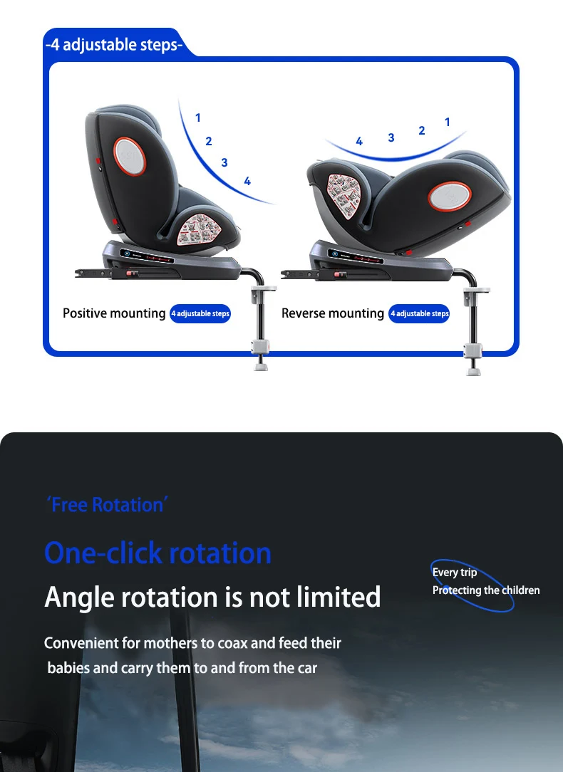 Child Car Safety Seats with ISOFIX for Baby Adjustable 360 Rotating Direction Angle 0-12 Years Suitable Car Seat with Footrest
