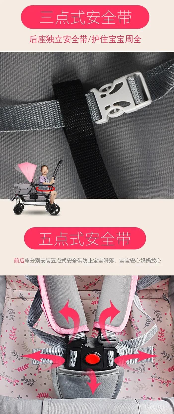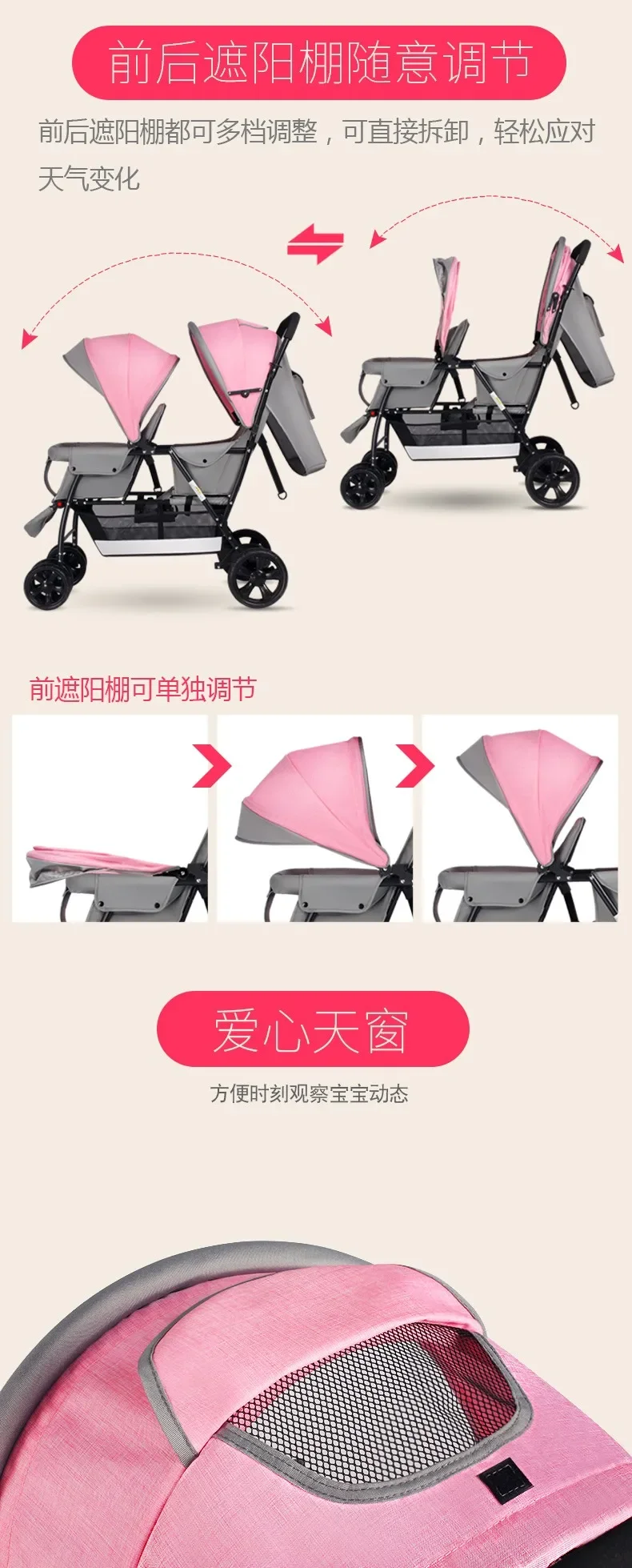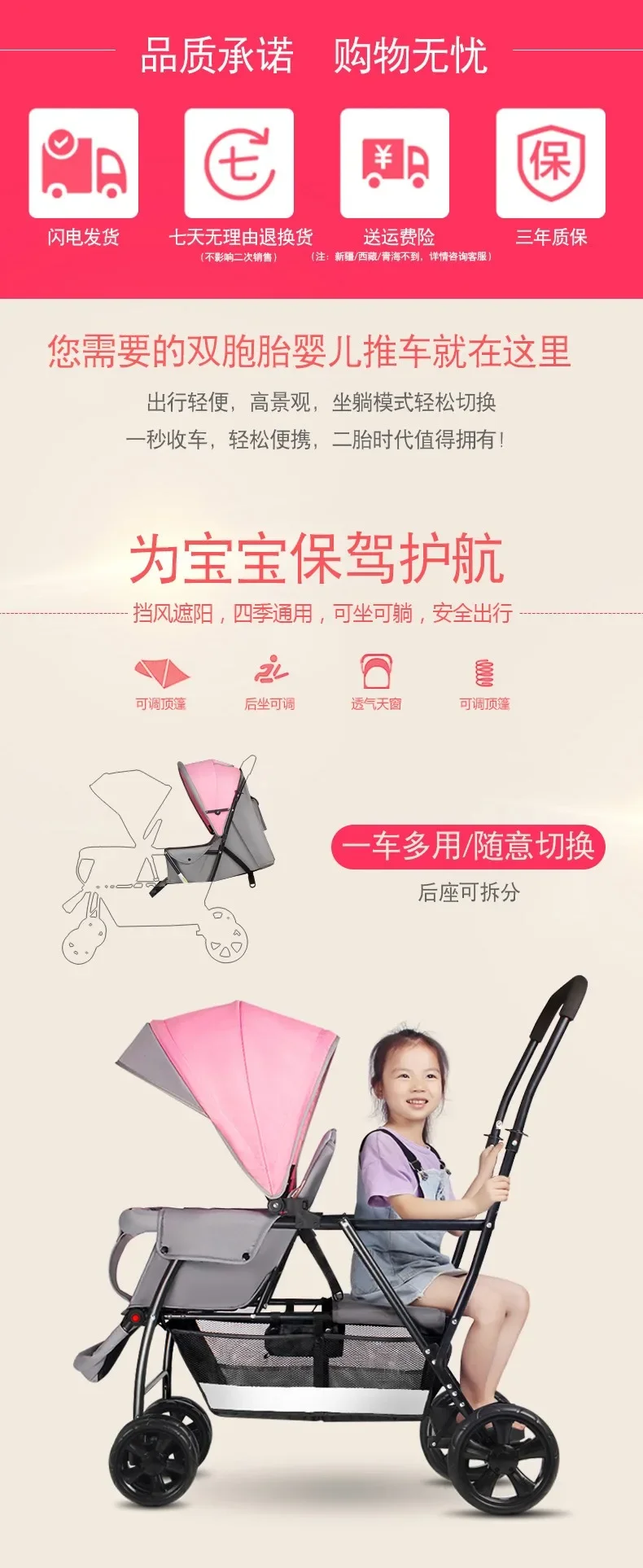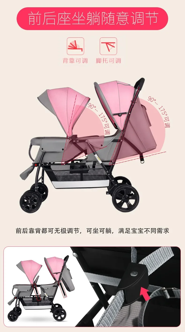 2025The Twin Strollers Sit Back and Forth in The Wheelbarrow, The Size of The Trolley, The Twin Trolley Can Sit and Lie Down.